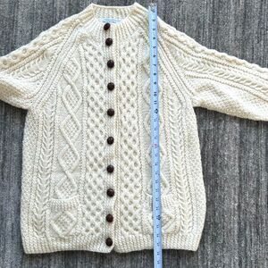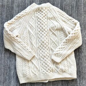 Irish Fisherman Wool Cardigan Sweater Hand Knit