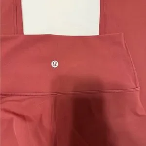 Lululemon burgundy 25” high-waisted leggings. Stylish red high-waisted leggings. Perfect for workouts or casual wear.