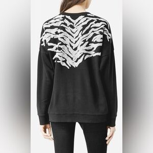 All Saints Long Sleeve Zebra Stripe Crewneck Sweatshirt - Size Medium - Black