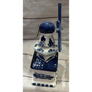The Porcelain Glass Blue And White Windmill 6" figurine is a beautifully hand-painted collectible sculpture perfect for any room and all occasions. Made from porcelain and featuring Dutch Delft style, this original piece showcases a blue and white color scheme that adds a touch of elegance to any decor. Measuring 6 inches in length, this windmill figurine is a unique and charming addition to any collection, especially for those who appreciate handmade craftsmanship and windmill subject matters. Smoke free home.