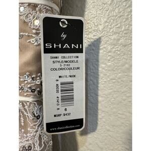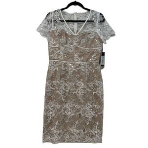 NWT SHANI $432 White Lace Silver Sequin Overlay Cocktail Dress Size 6