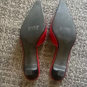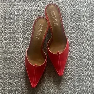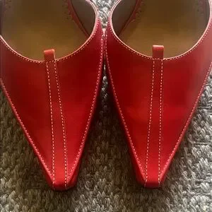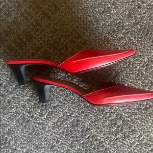 Elegant red mules with a sleek pointed toe and kitten heel. Perfect for adding a pop of color. New in box.