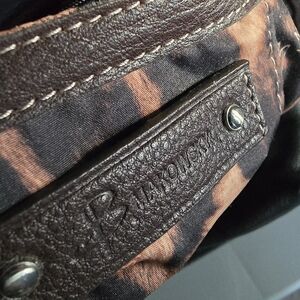 This B. Makowsky Westbourne Crossbody Saddle Bag is a distinct, Western-themed handbag known for its pebbled leather with leopard-print lining, featuring substantial silver hardware, multiple pockets (including a front buckle pocket and back cell phone pocket), and a comfortable, crossbody strap, offering both style and functionality with a signature "B" charm.