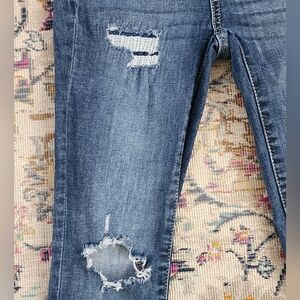 Sol Junior Girls Super Skinny Fenim Medium Wash Jeans Ripped Style, sz 0/24