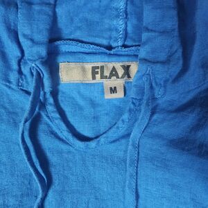 Flax Blue Linen Hooded Tunic Top Med Lagenlook Hood Peasant Fairy Boho Beachy