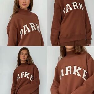 Stylish brown turtleneck sweater by Parker. Perfect for a chic, casual look.