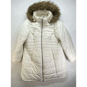 Susan Graver Water Resistant Quilted Puffer Jacket with Hood Womens XL white