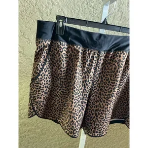 Women's Lands' End Plus 18 Brown Black Leopard Print Athletic Shorts
