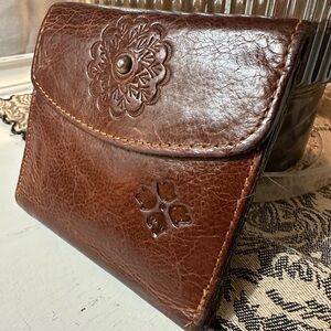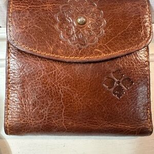 Patricia Nash Brown Leather Embossed Wallet with Kiss lock Coin purse