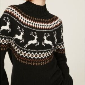 Stay cozy and stylish with this black knit dress featuring a charming reindeer pattern. Perfect for festive occasions and everyday wear.