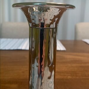 Vintage hammered candlesticks, excellent condition. 6” tall, for tapers. Silver tone, very clean, and have not been used a lot. Covered on bottoms so won’t scratch.