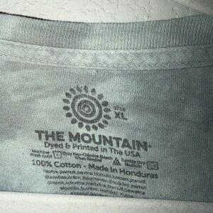 Authentic vintage The Mountain tie dye graphic t shirt featuring a detailed wolf standing behind an aspen tree. Bold earthy colors with classic hand dyed look The Mountain is known for. Perfect for collectors and lovers of nature inspired statement tees.