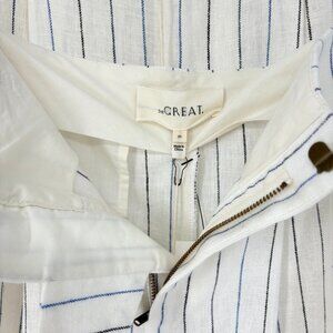 NWT THE GREAT. Women's Pleated Column Mid Rise Skirt | Sz 25 | Cream Pinstripe