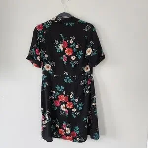 NWT Glam by Glamorous Dress Womens Medium Black Floral Button Wrap Front Mini