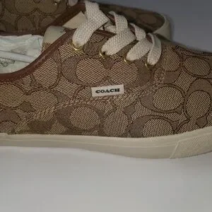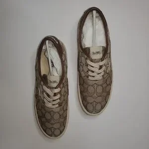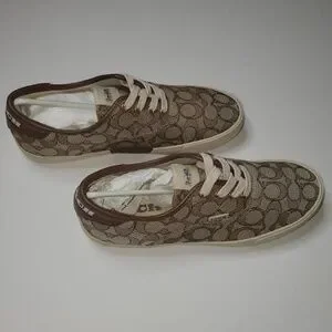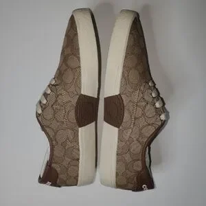 Authentic Coach Citysole Skate Sneakers C2705. Size 9.5B Signature Khaki with leather trim built for the urban obstacle course, this lightweight Skate is made with proprietary Coach CitySole technology for maximum comfort and flexibility. An updated take on a classic sneaker style, this minimalist Skate sits at the intersection of fashion and function. It features a cushioned insole for added support and stability. Your feet will thank you. This authentic Coach Citysole Skate Sneakers, is a stylish casual sneaker designed by the renowned brand Coach. This Khaki colored sneaker is part of the Coach Signature product line and features a classic sneaker style with a clean and modern look.This shoe is perfect for women who appreciate both fashion and comfort in their footwear. They're true to size too.