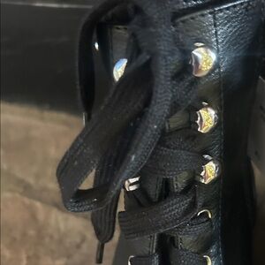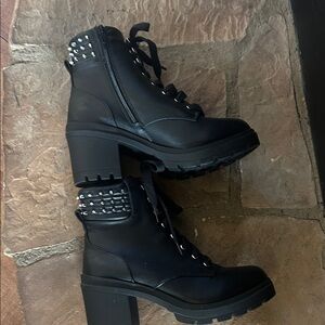 NWT Black Lace-Up Ankle Boots with silver studs. Size 81/2