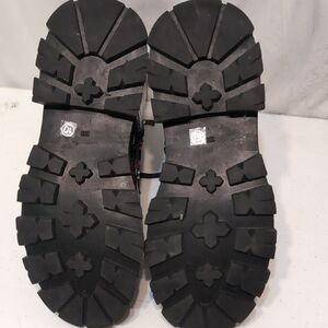 Betsey Johnson Black Johnny Tin Can Rose Combat Boots 3" Heels Size 10
