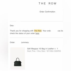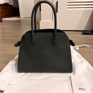 The Row Margaux 10 in Dark Pine. Excellent condition, no signs of wear, stickers still on feet. Rare seasonal color, sold out online and in stores. Purchased directly from the Row website as pictured with all original paperwork, dust bag, and shoulder strap included.