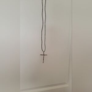 #CrossNecklace #RhinestoneJewelry #StatementNecklace #EdgyStyle #SparklingDetails #FaithInspiredFashion #BlackCordNecklace #UniqueJewelryFinds #ChristianJewelry #GothGlam #TrendsetterStyle #Y2KAccessories #BohoEdge #ChicAndEdgy #FestivalReady