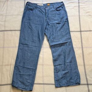Pilcro Blue Tencel Linen Wide Leg Chambray Pants