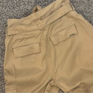 Stylish tan cropped pants with a tie waist. Features side cargo pockets. Perfect for everyday wear. Size 6- very good shape! BOGO on everything in my closet! No limit on number of items, cheaper item free. Add items to bundle for a private offer!