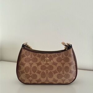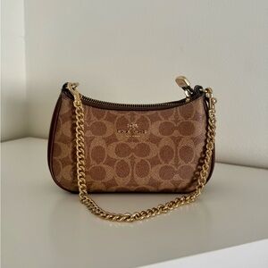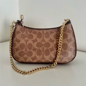 @lux_teens I couldn’t notice any flaws at first but then I noticed if you look really closely you can see that the gold hardware is starting to look a little bit silver on one part of the chain. I took a close up picture on last slide. Other than that no flaws!