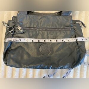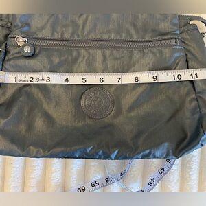 Stylish crossbody bag with adjustable strap. Front zip pocket and signature charm included. Perfect for everyday use. Slight fabric scratch lower left side.