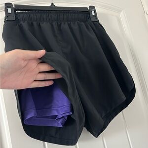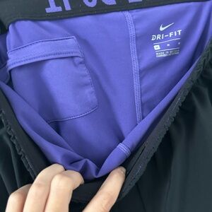 NIKE 2 in 1 Running Shorts Black Purple Dri-Fit Medium Polyester Spandex