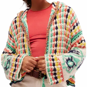 NWT Free People Baja Baby Hooded Cardigan Sz M Canyon Vibes Crochet Crop Chunky