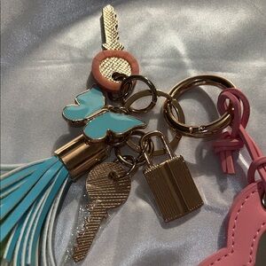 Add a touch of charm to your accessories with this pink heart mirror keychain. Featuring colorful tassels, it's perfect for adding flair to your keys or bag.