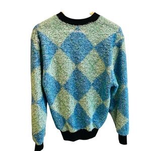 Aqua green fuzzy argyle cardigan by Pleasures Now. EUC. Size medium measures shoulder to hem 24”, armpit to armpit 22”, waist 14”