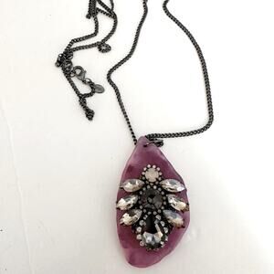 Express Necklace Stone Pendant Long Large Chunky Bling Stones Gunmetal