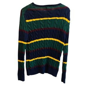Iconic stripe cable knit sweater by Ralph Lauren. EUC. Size small measures shoulder to hem 28”, armpit to armpit 23”, waist 20”