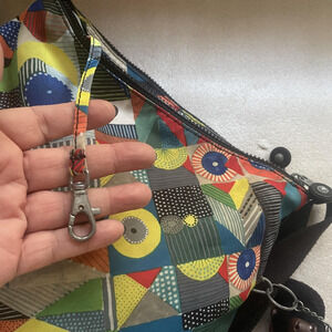 Kipling Crossbody Bag Multi Geometric Nylon Zip Pockets Monkey Keychain HB6141