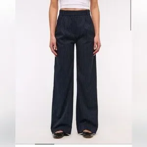 Abercrombie & Fitch Dark Blue Pinstripe Curve Love Sloan Wide Leg Pants