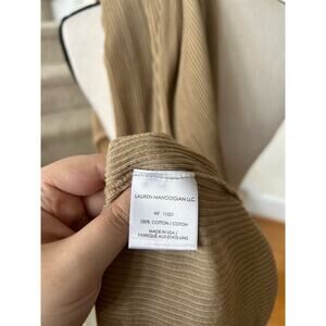 Lauren Manoogian Tan Ribbed Short Sleeve Column Lettuce Hem Tunic Dress