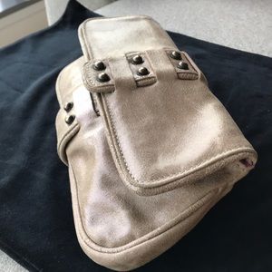 KALE Designer Brand Shimmery Golden Beige Suede Clutch