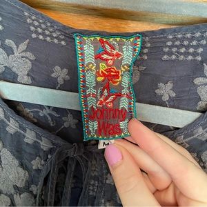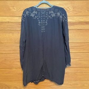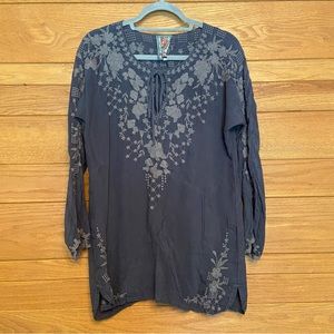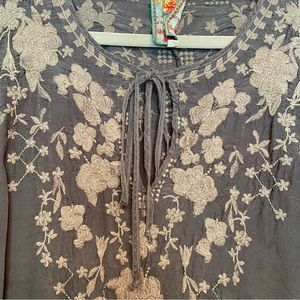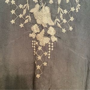 Johnny Was embroidered gray cupro rayon long sleeve blouse