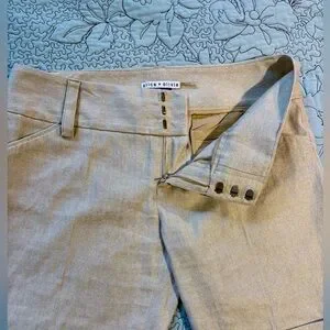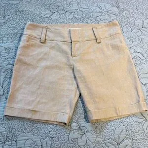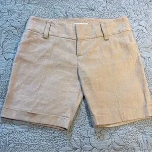 Alice + Olivia Metallic Gold Linen-Blend Cuffed Chino Shorts Sz 6🧡