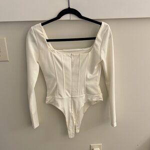 Princess Polly Cream white bodysuit long sleeve corset look