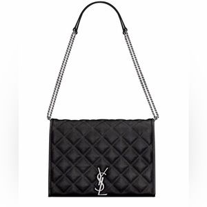 The iconic rectangular silhouette Saint Lauren Becky shoulder bag. Diamond-quilted design is emphasized by intricate stitching.