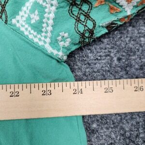 Ariat Blouse Womens XL Green Embroidered Boho Western Tunic 3/4 Bell Sleeve