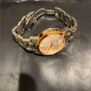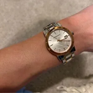 Stylish Burberry watch with mixed metal - silver with accents of rose gold.