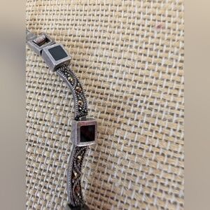 Vintage Sterling Silver Onyx And Marcasite 1980s Bracelet