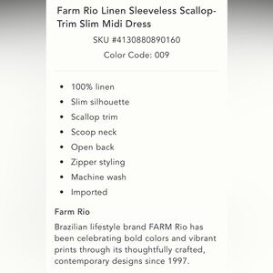 Farm Rio NWT Anthropologie Linen Sleeveless Scallop-Trim Slim Midi Dress size XS