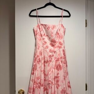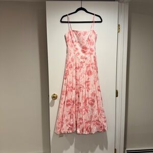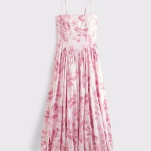 Abercrombie & Fitch Dipped-Waist Bubble Hem Midi Dress pink floral