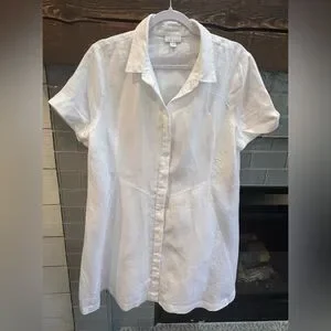 J. Jill Love Linen White Button Down Dress Petite Large EUC