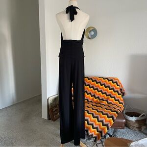 Arden B Glam Goth Halter Ruched Wide Leg Jumpsuit in black!