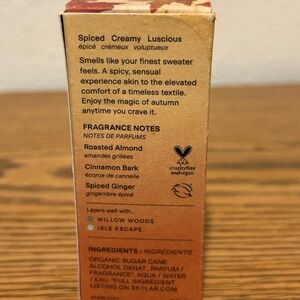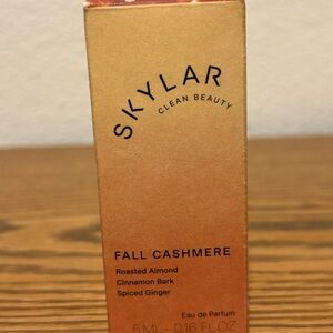 Experience the warm embrace of Fall Cashmere Eau de Parfum. This fragrance combines roasted almond, cinnamon bark, and spiced ginger for a cozy scent. The elegant gold packaging adds a touch of luxury. Hypoallergenic, safe for sensitive skin, eco friendly. 5ml-0.16 fl oz. New.