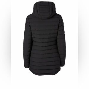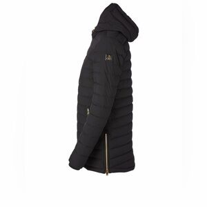 This down-filled jacket is designed with a drawcord hood and quilting throughout. Crafted in a two-way stretch shell fabric, the jacket is finished with three zip pockets a the front, zipped side vent detail and a MOOSE KNUCKLES logo at the sleeve.